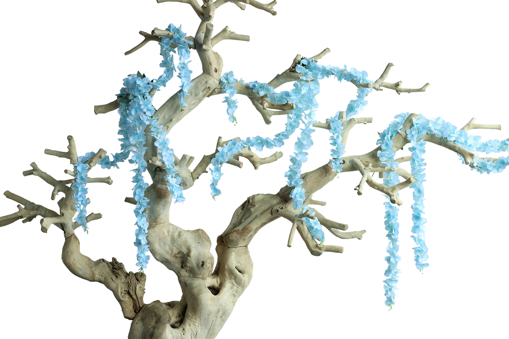 Product ID: AF-B-WISTERIALACE-240Luxury cascading light blue wisteria bunch with soft, lace-like blooms, perfect for upscale hanging installs, arches, and elegant event decor.