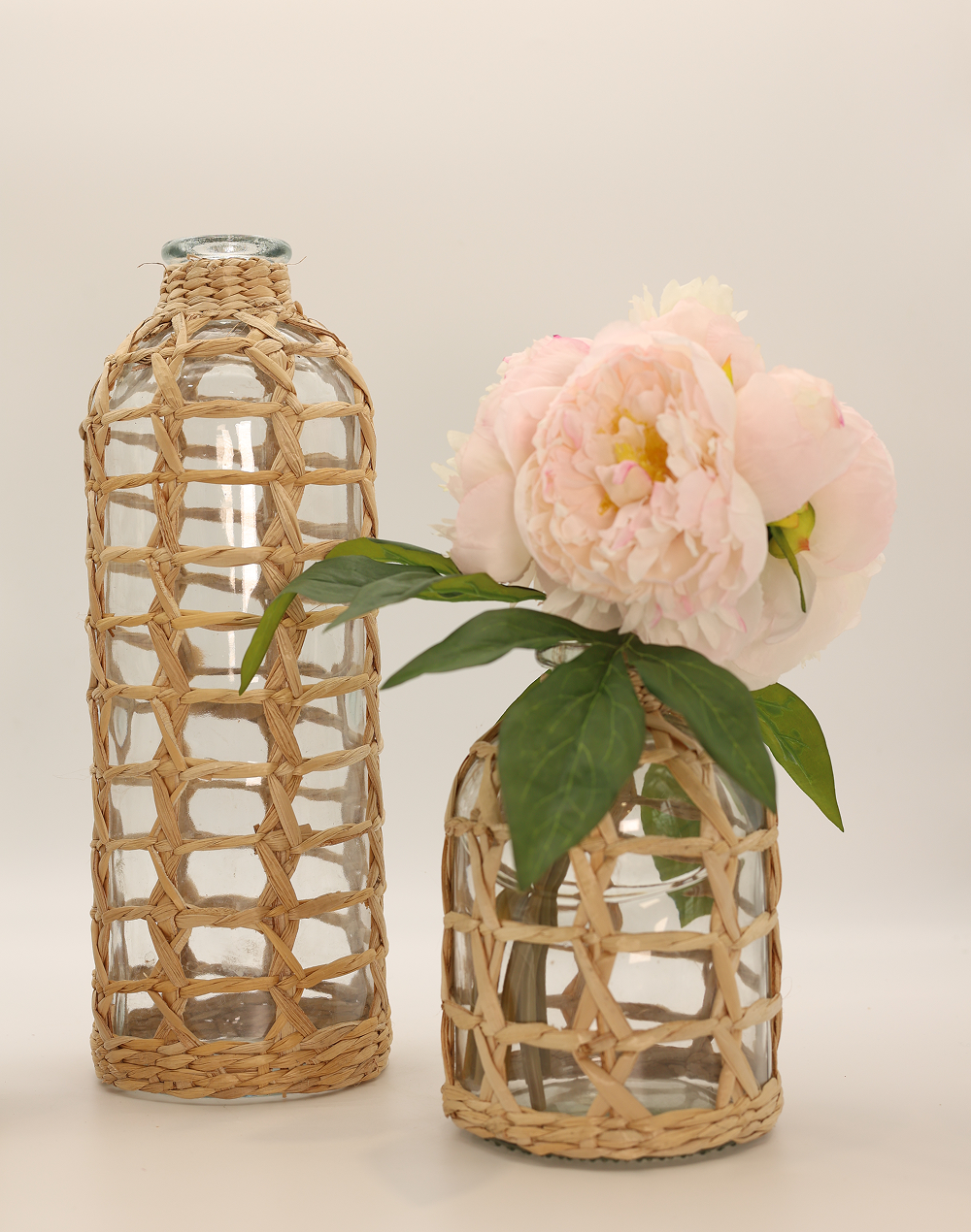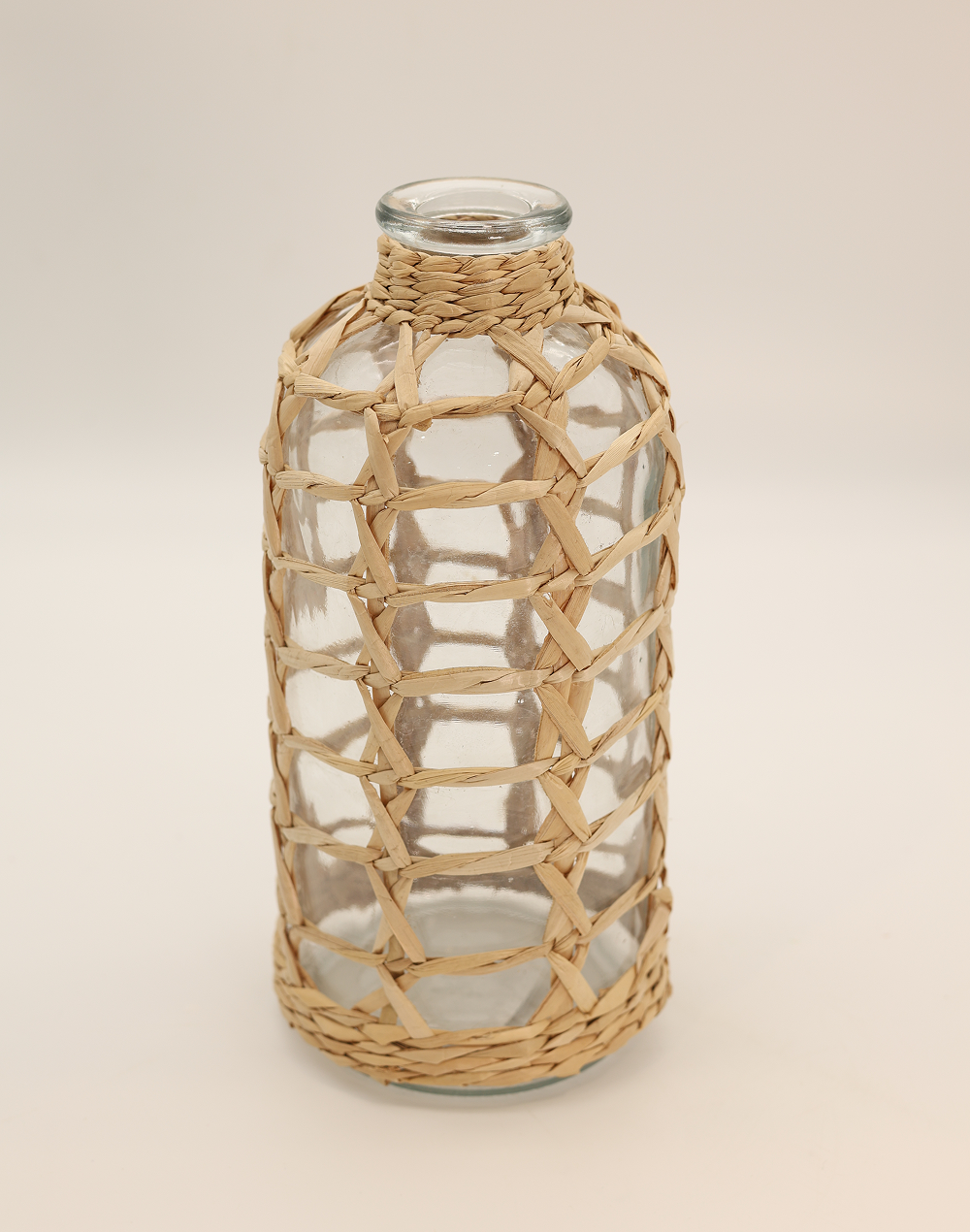 Product ID: BL23110B-1306Bring natural texture and effortless charm into your space with the Clear Ratum Medium Glass Bottle Vase. featuring a clear glass bottle encased in a handwoven rattan lattice, this piece blends organic materials with a refined silhouette. The warm, earthy tones and artisanal weave create a relaxed yet elevated look, ideal for beach-inspired decor, rustic weddings, and modern interiors. Perfect for displaying dried florals, pampas grass, or as a standalone accent, this decorative vase introduces depth, texture, and a timeless natural aesthetic to any setting.