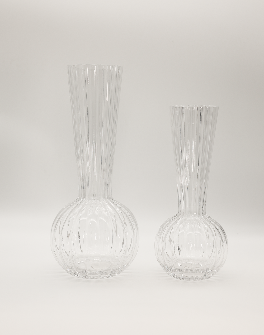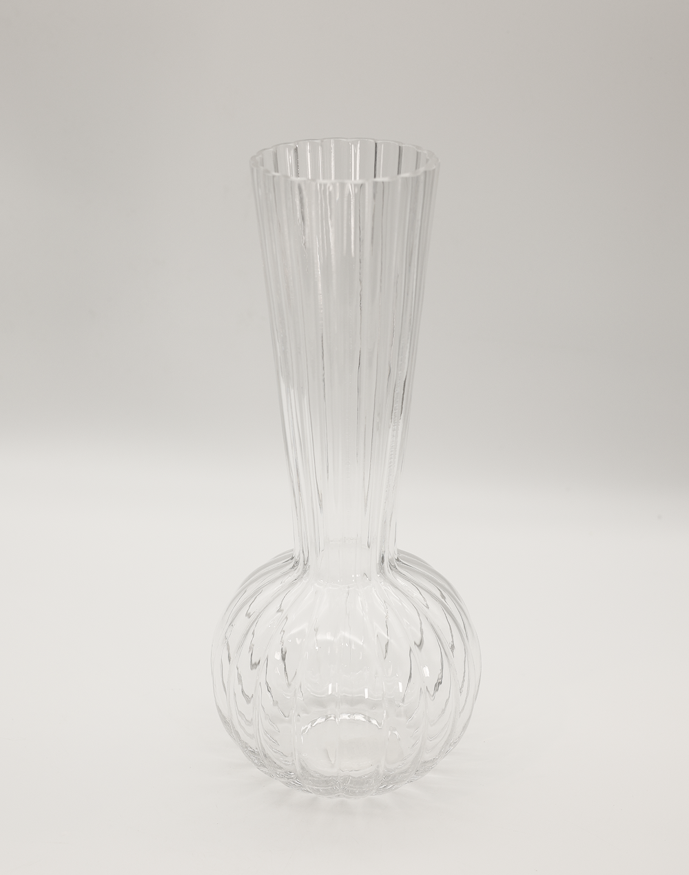 Product ID: CLV-1302AStriking and architectural, this crystal-clear vase features a ribbed, elongated neck rising from a rounded sphere base offering instant height, texture, and brilliance. Available in two sizes, it's perfect for creating a layered moment on console tables, mantels, and luxury event centerpieces. Style the taller size with long stems or branches, and pair the smaller size with compact florals for a refined, gallery-inspired finish.