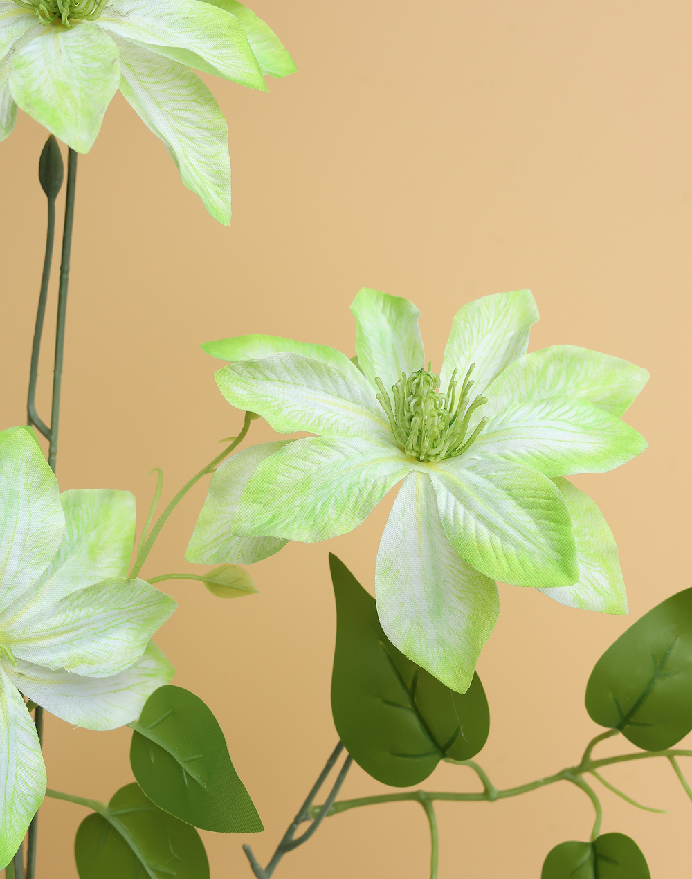 Product ID: Af-Clematis-1096BSoft, showy blooms and elegant branching give the Clematis Nelly stem a refined, garden-inspired look with graceful movement. Available in 3 colors to suit your palette, it styles beautifully in bouquets, centerpieces, tall vases, arches, and luxury event designs. Use it as a focal stem or weave it through fuller florals and greenery for a layered, professionally curated finish with long-lasting beauty and no maintenance.