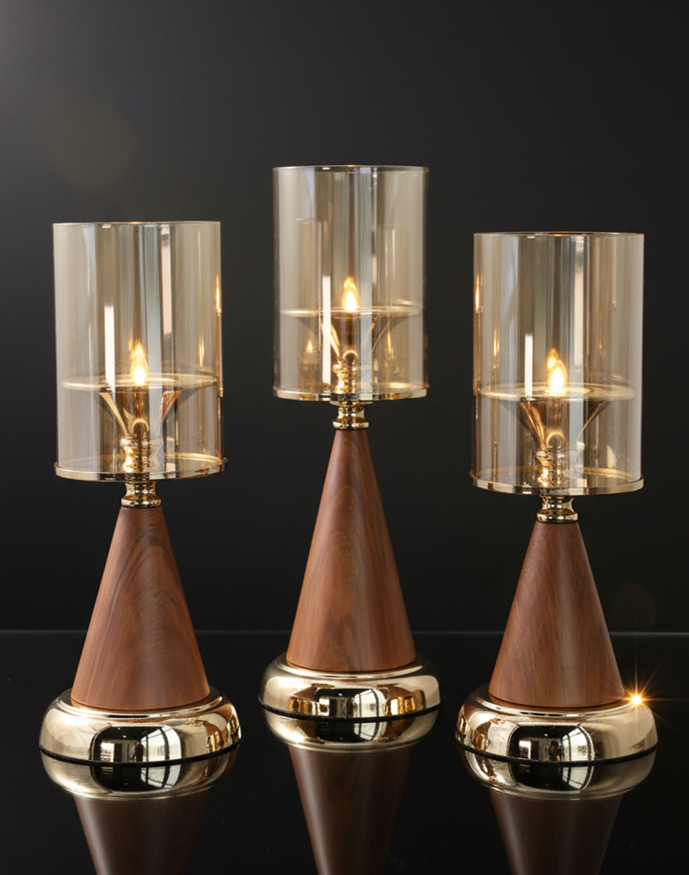 Product ID: taupe S-1440AWarm and refined, the Honeywood Prism Glass Candle Holder features a textured glass cylinder paired with a rich wood base and subtle metallic accents. The blend of natural wood and faceted glass creates a balanced, elevated look that brings depth and warmth to any setting. Sold individually, this piece is perfect for styling on its own or incorporating into curated arrangements for weddings, event decor, and sophisticated interiors.