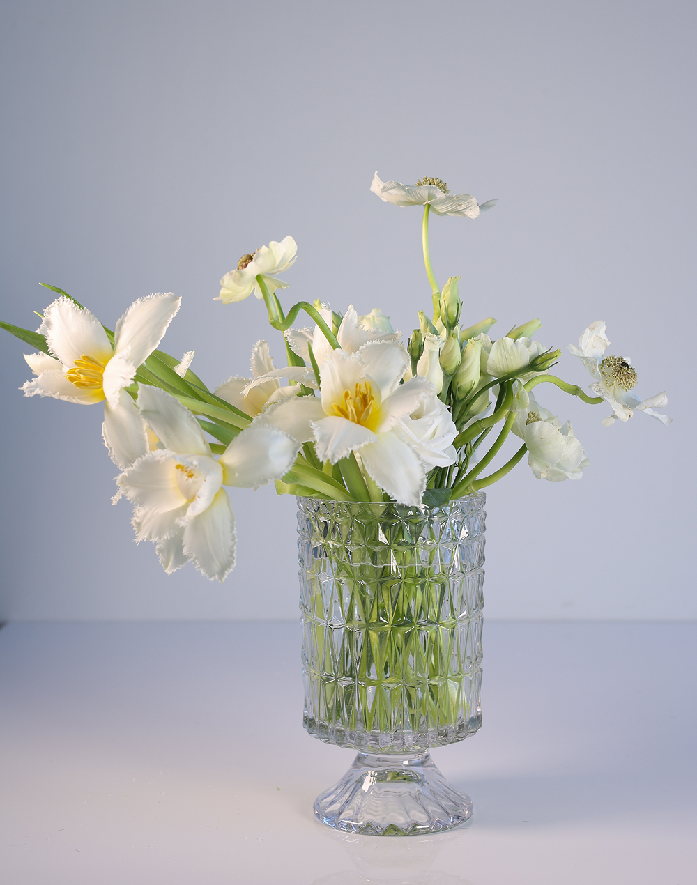 Product ID: CLV-ClearDiamond-98Some things just catch the light perfectly. This small crystal vase transforms even the simplest flower arrangement into a dazzling display, thanks to its intricate diamond cut pattern that sends sparkles dancing across your space. Available in clear crystal or green, this petite powerhouse proves that size isn't everything. Its geometric cuts create an ever-changing light show as you move around it, while the crystal construction adds instant sophistication to any shelf, table, or windowsill. Perfect for showcasing a few precious blooms or creating an intimate centerpiece, this diamond cut vase makes every stem look like it just stepped off a magazine cover. Whether you're displaying fresh-cut garden flowers or a cherished rose, this crystal companion ensures your botanicals always have the spotlight they deserve.