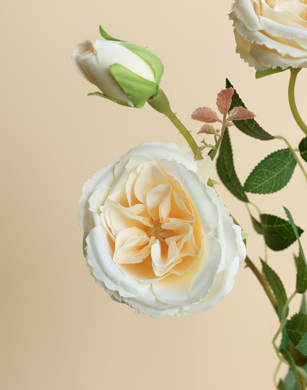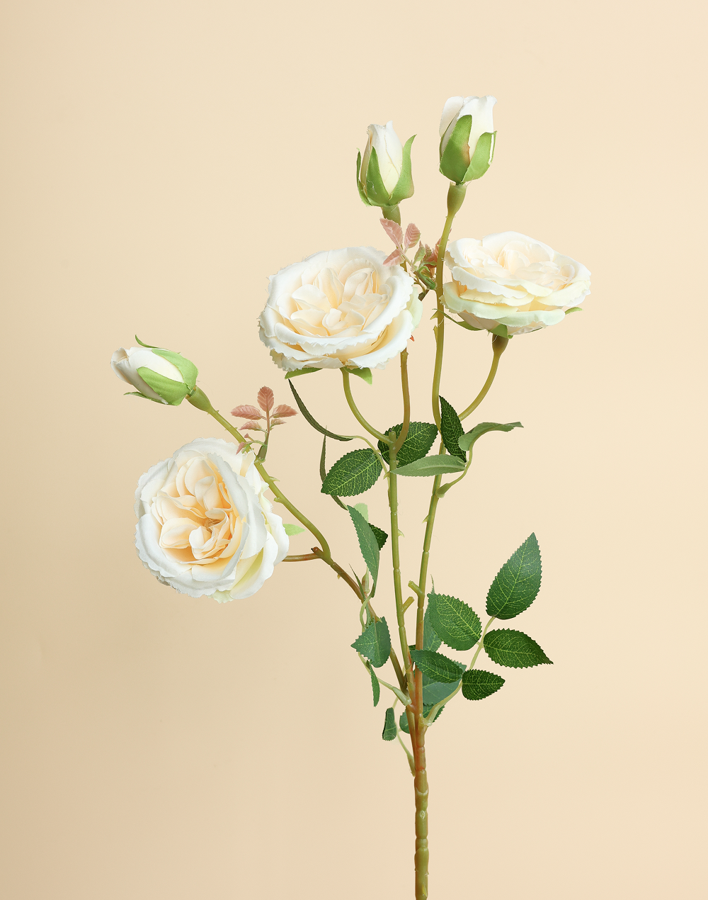 Product ID: AF-Rose-1113CWarm ivory petals and petite bloom scale give this garden rose spray a romantic, luxury finish. Perfect for bridal work, neutral palettes, and refined tabletop styling, it layers seamlessly with other florals for a cohesive look. Ideal for creating soft dimension without overpowering arrangements.