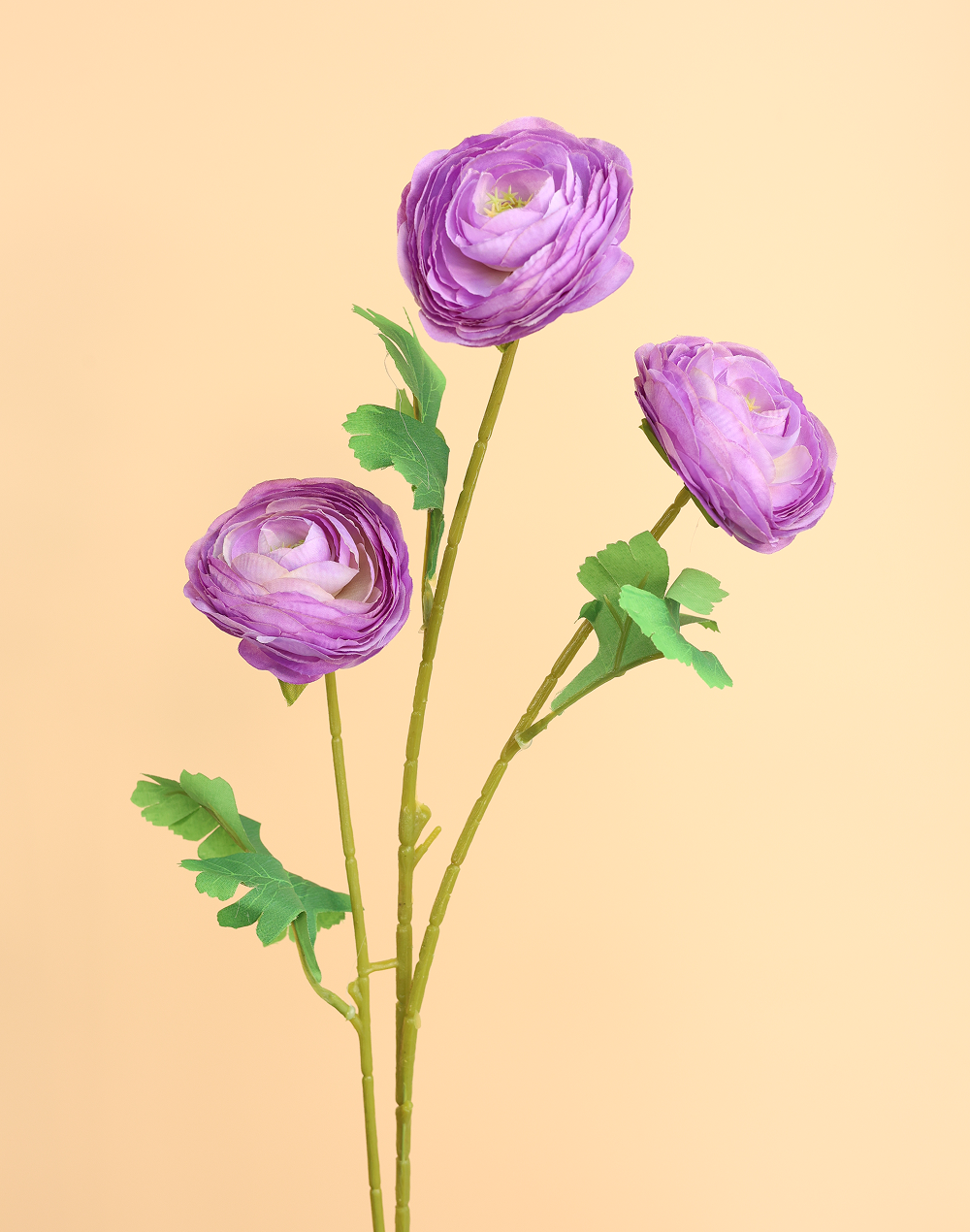 Product ID: AF-ranunculus-1126FA soft lavender hue and lush petal layering give this 3-head ranunculus spray a romantic, editorial feel. Perfect for spring palettes, luxury centerpieces, and modern bouquets, it brings gentle color with high-end texture. Pairs beautifully with blush, ivory, mauve, and fresh greens.