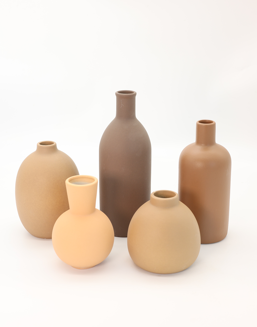 Product ID: XY100-1461Elevated through simplicity and tone, the Sable Form Collection features five sculptural ceramic vases designed in a rich palette of deep brown, warm sand, and soft neutral hues. Each piece showcases a distinct silhouette�from elongated bottles to rounded vessels�creating a curated, gallery-inspired arrangement. The matte finishes and organic forms bring warmth and balance to any setting, making this collection ideal for weddings, event styling, and modern interiors seeking refined, understated decor.
