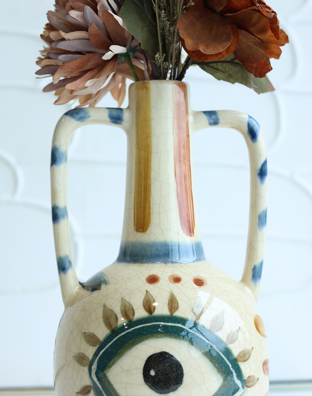 Product ID: wjmE11-1-1397ADrawn from ancient symbolism and artistic heritage, the Mythos Eye Vase Collection features ceramic forms adorned with bold cobalt eye motifs on a warm ivory base. Each vase showcases a distinct silhouette, blending sculptural design with intricate pattern work for a striking visual statement. Perfect for event decor, statement shelves, and curated interiors, these decorative vases bring depth, culture, and a refined, luxury aesthetic to any space.
