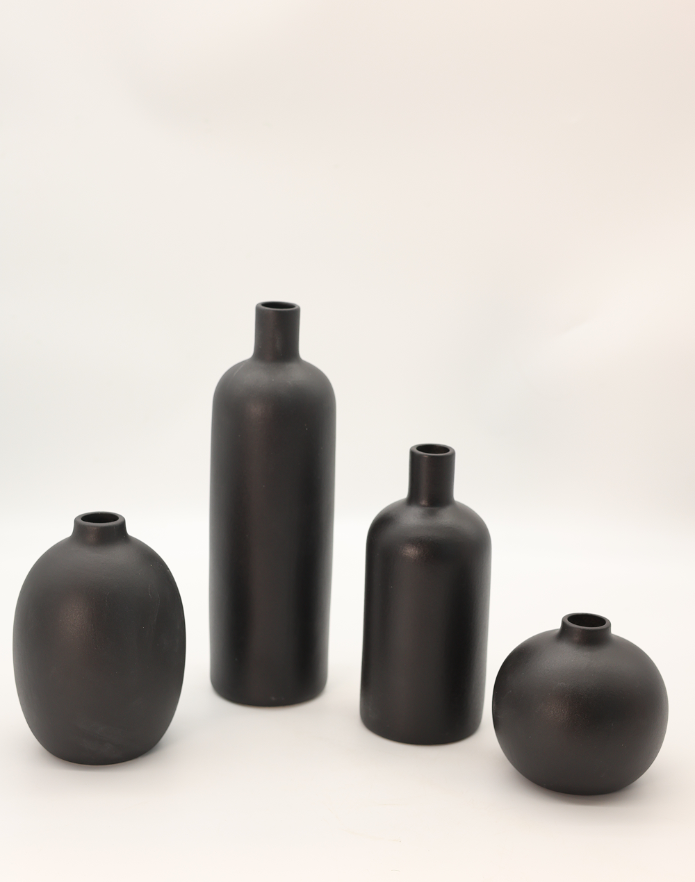 Product ID: XY107-1456Bold and refined, the Onyx Atelier Collection features four sculptural ceramic vases finished in a deep matte black tone for a striking, modern presence. Each vase showcases a unique silhouette�from elongated cylinders to rounded forms�creating a curated, gallery-style arrangement. Perfect for weddings, event styling, and contemporary interiors, this set delivers a clean, architectural aesthetic with elevated luxury decor appeal.