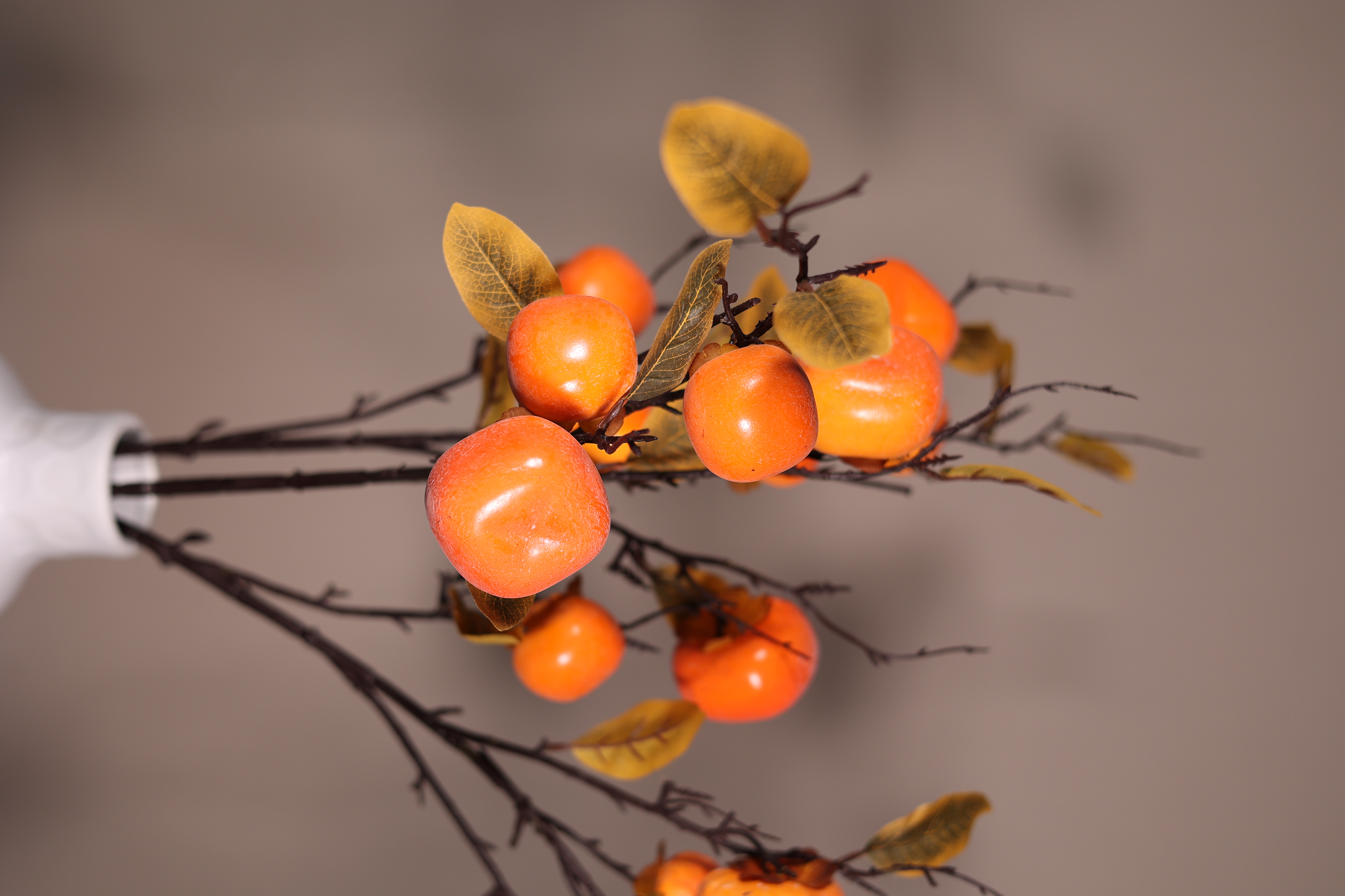 Product ID: F-PERSIMON-244Vibrant Persimon faux fruit stems with realistic leaves perfect for luxury displays, centerpieces, and modern decor.
