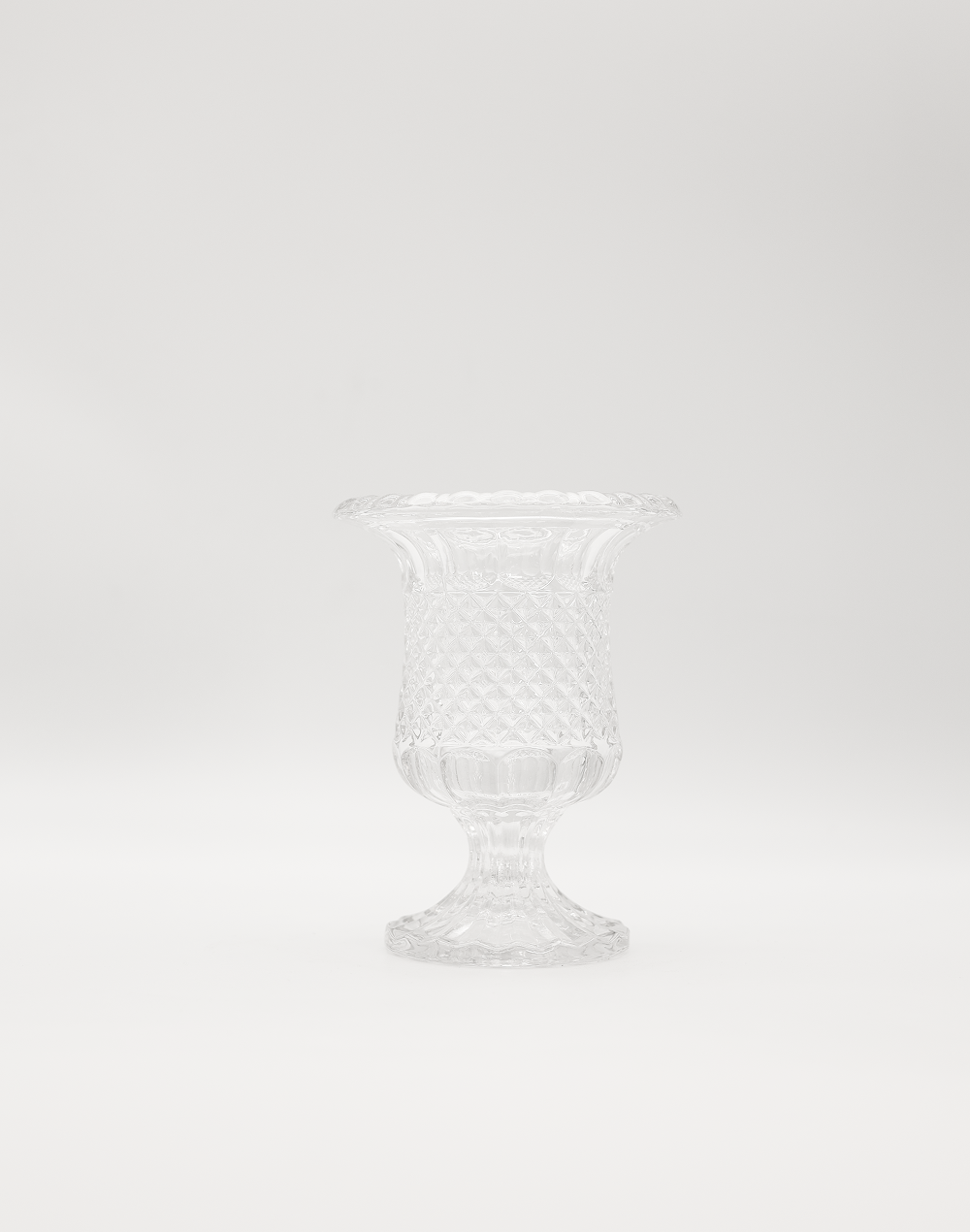 Product ID: CLV-112-3-1292Bring refined sparkle to your arrangements with the Quilted Crystal Vase an elevated pedestal silhouette wrapped in a diamond-cut, quilted texture that reflects light beautifully. The wide flared rim creates a generous opening for lush floral recipes, while the sculpted base adds height and presence for centerpieces, aisle moments, cake tables, and luxury home styling.