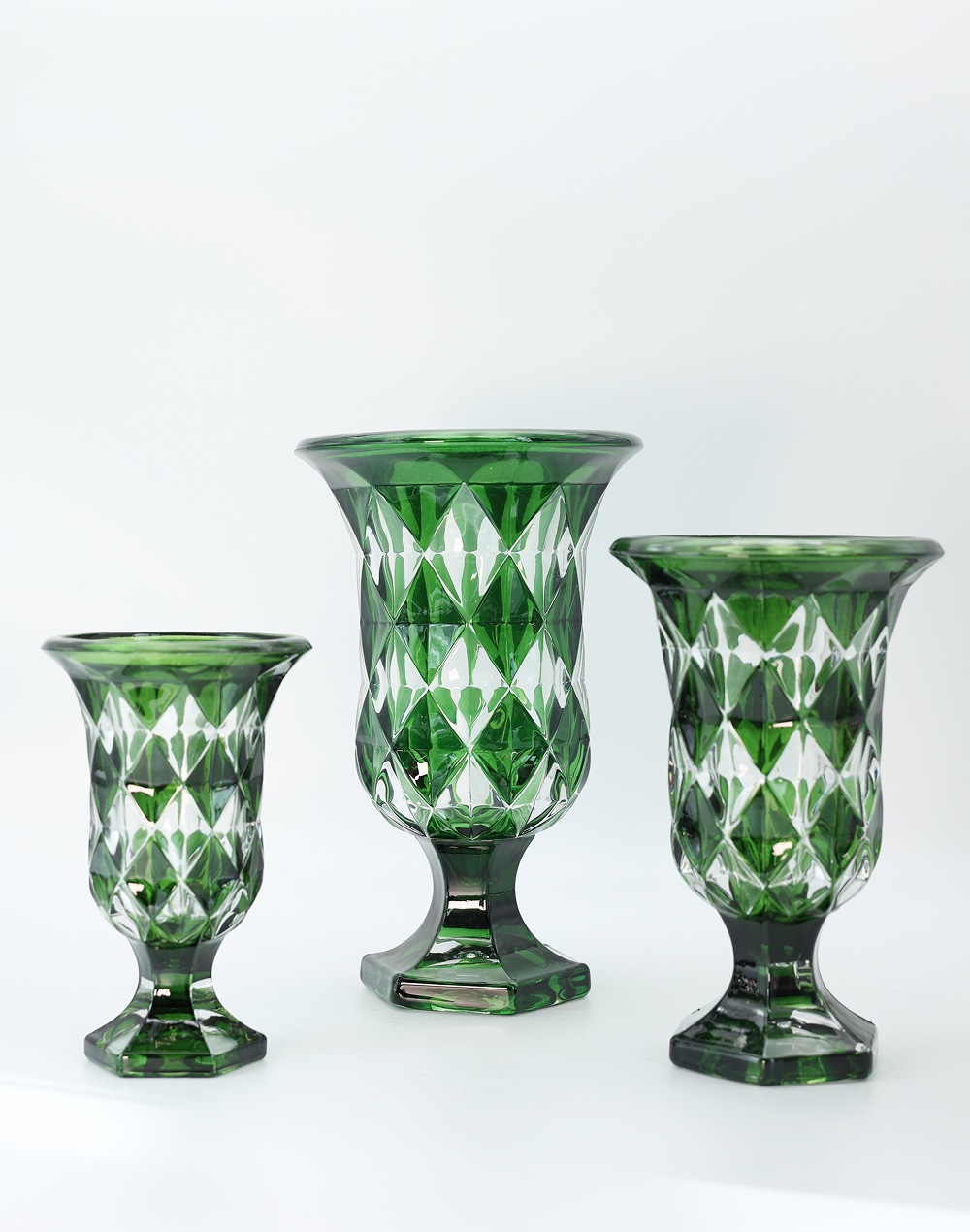 Product ID: 250G-1382Add a vibrant touch of elegance with the Sapphire Medium Regal Emerald Crysal Vase Faceted Crystal Centerpiece. Showcasing a rich Emerald tone and intricate geometric cuts, this vase reflects light beautifully, creating a luminous and eye-catching display. The flared rim and elevated pedestal base provide a refined silhouette, perfect for floral arrangements, wedding centerpieces, and luxury event styling. Ideal for adding depth, color, and sophistication to any setting, this vase blends timeless design with a bold, modern finish.
