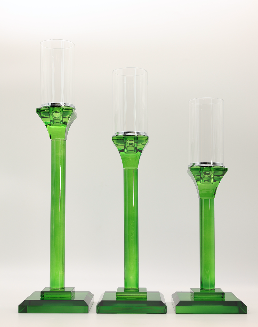 Product ID: 7137SG1335ABring vibrant elegance to your decor with the Emerald Green Pedestal Hurricane Candle Holder. Featuring a clear glass hurricane cylinder paired with a rich emerald green pedestal base, this striking piece adds height, color, and sophistication to any table setting. The Small, modern silhouette makes it perfect for wedding centerpieces, luxury event decor, banquet tables, and stylish home interiors. Designed to hold pillar or LED candles, the glass cylinder enhances the warm glow of candlelight while the bold green base creates a dramatic decorative statement. Ideal for modern, classic, or seasonal decor themes.