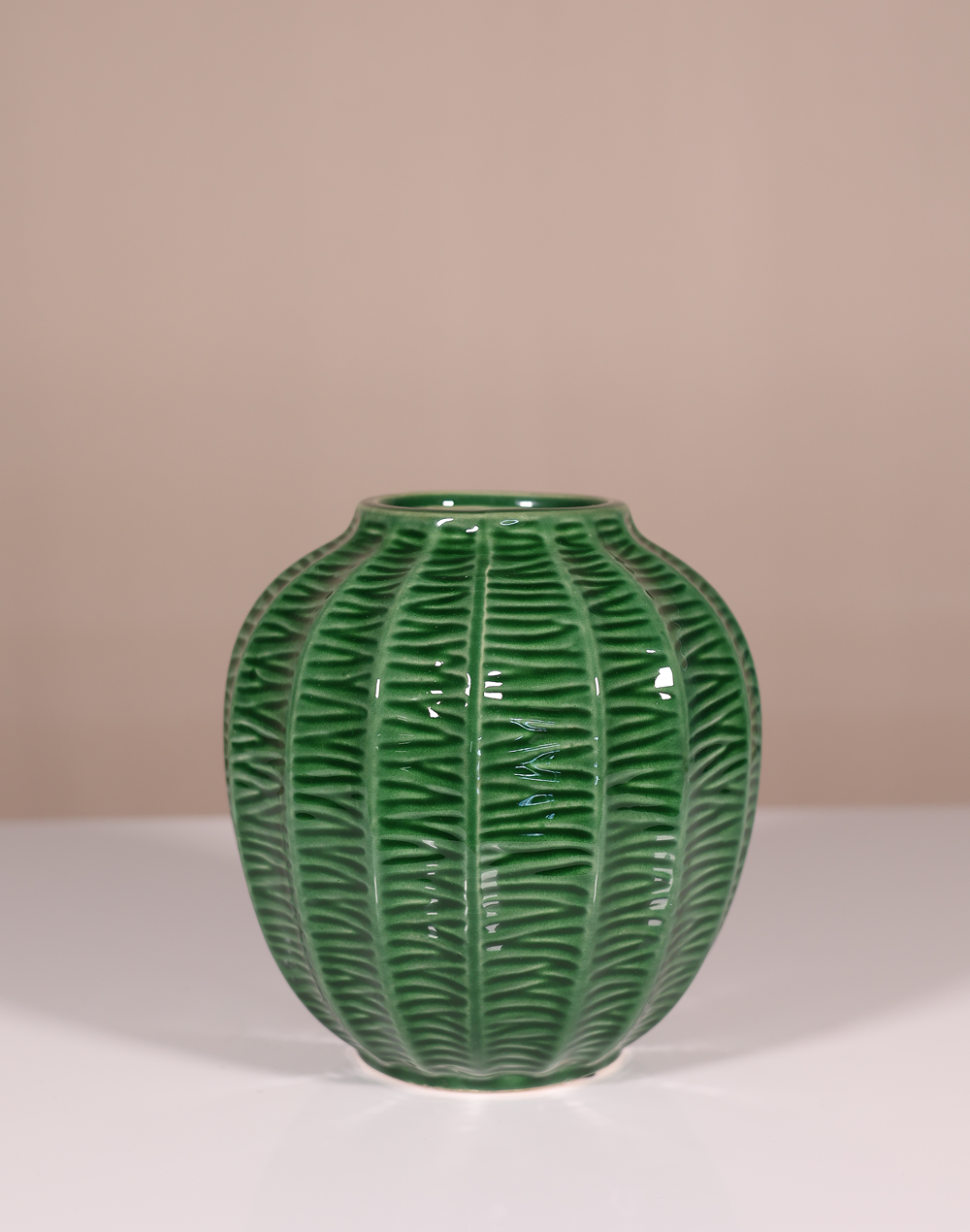 Product ID: CV-SABA-G276Bringing a fresh pop of nature-inspired design to your space, this glazed ceramic vase charms with its playful melon-inspired silhouette. The rounded form catches light beautifully, while the verdant green finish adds an organic touch to any room. Available in two sizes, it's equally stunning as a standalone decorative piece or filled with your favorite blooms. Part of the Saba green collection, this versatile vase transitions seamlessly from everyday display to special occasions. Place it on a dining table, bookshelf, or mantel its curved shape and rich green hue create an eye-catching focal point that feels both fresh and timeless.