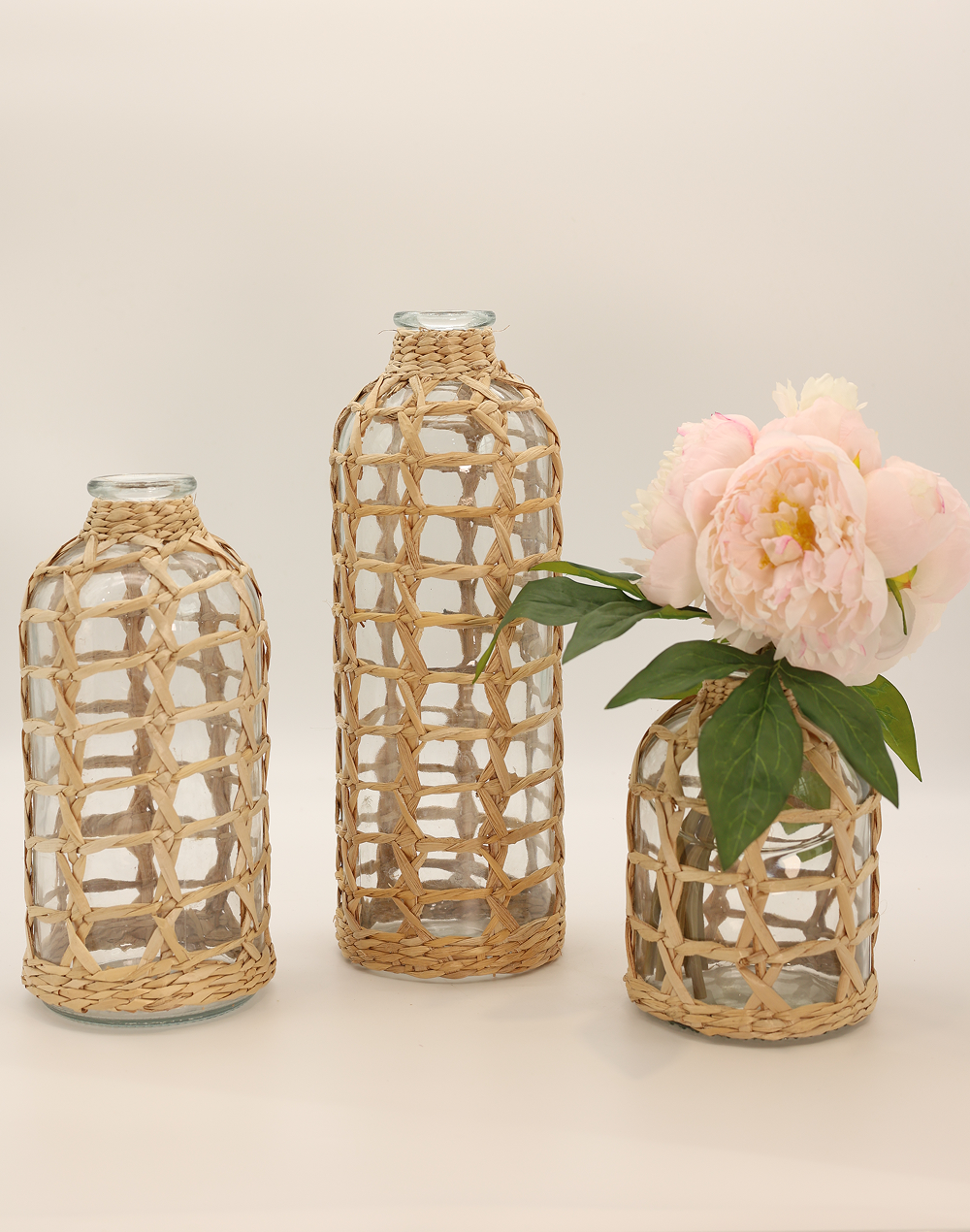Product ID: BL23110A-1305Bring natural texture and effortless charm into your space with the Sevilla Ratum Glass Bottle Vase. Featuring a clear glass bottle encased in a handwoven rattan lattice, this piece blends organic materials with a refined silhouette. The warm, earthy tones and artisanal weave create a relaxed yet elevated look, ideal for beach-inspired decor, rustic weddings, and modern interiors. Perfect for displaying dried florals, pampas grass, or as a standalone accent, this decorative vase introduces depth, texture, and a timeless natural aesthetic to any setting.