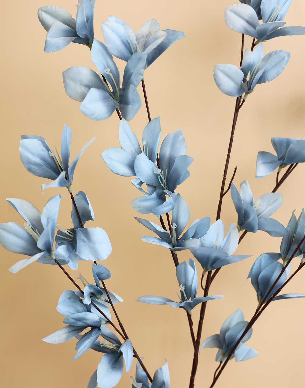 Product ID: AF-Flowerbranch-1129KSoft sky blue blooms create a fresh, modern look with airy branching movement and a boutique finish. Perfect for spring palettes, coastal-inspired decor, and statement vases, it brings gentle color with refined height. Beautiful with whites, creams, and light greenery for a curated design.