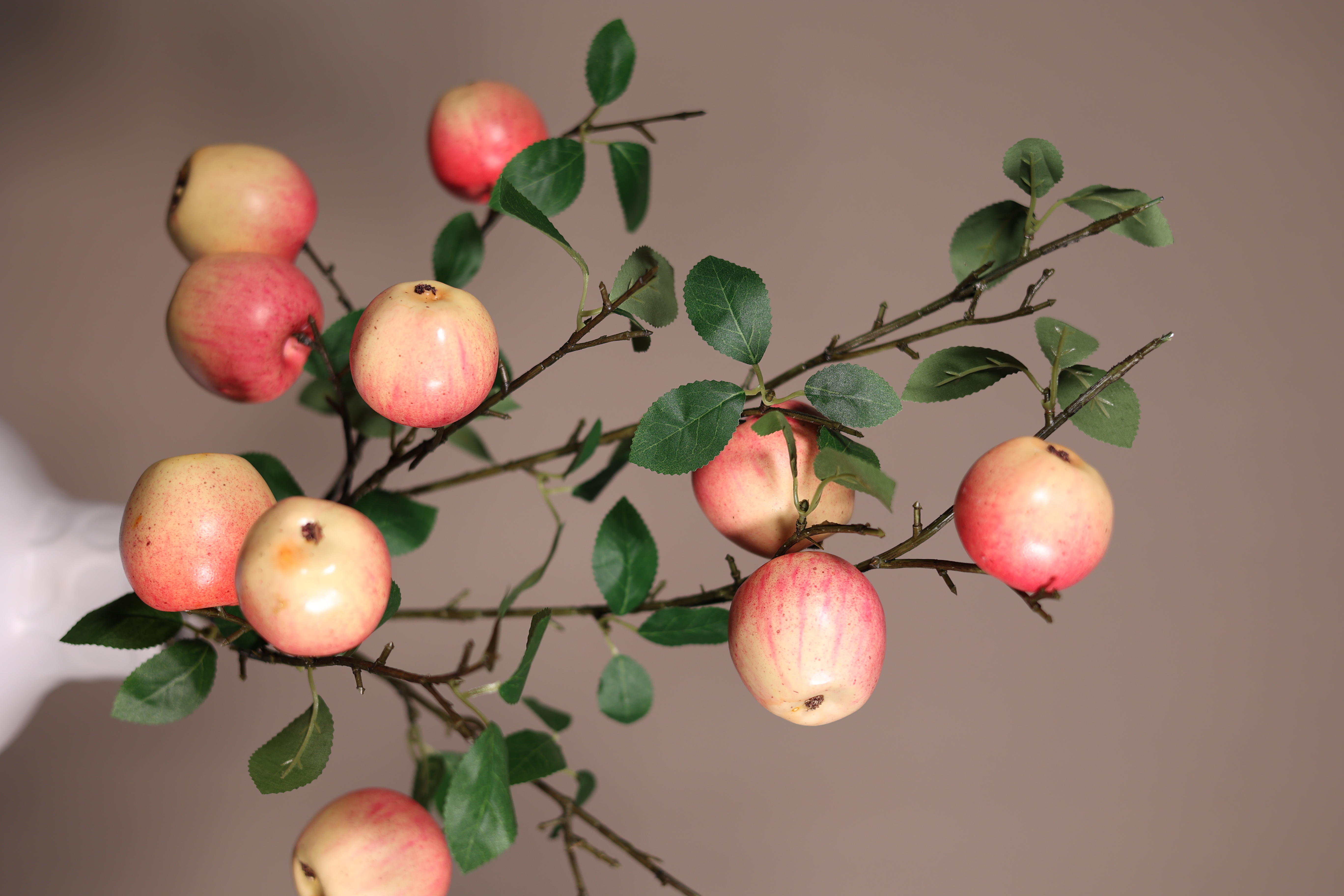 Product ID: F-GALA-245Luxury faux gala apple stem with glossy fruit and natural greenery, perfect for upscale kitchen decor and elegant arrangements.