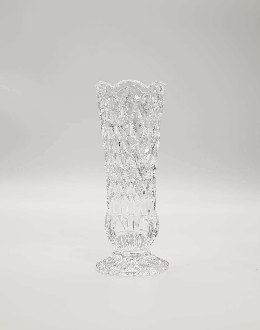 Product ID: 9221-1344AAdd brilliance and timeless elegance to your decor with the Sovereign Trumpet Crystal Vase. Designed with intricate diamond-patterned detailing and a softly scalloped rim, this vase reflects light beautifully, creating a luxurious and eye-catching display. The classic pedestal Vase enhances its graceful silhouette, making it ideal for floral arrangements, wedding centerpieces, event styling, and upscale home decor. Perfect for fresh flowers, artificial stems, or decorative accents, this crystal-style vase complements both traditional and modern interiors with refined sophistication.