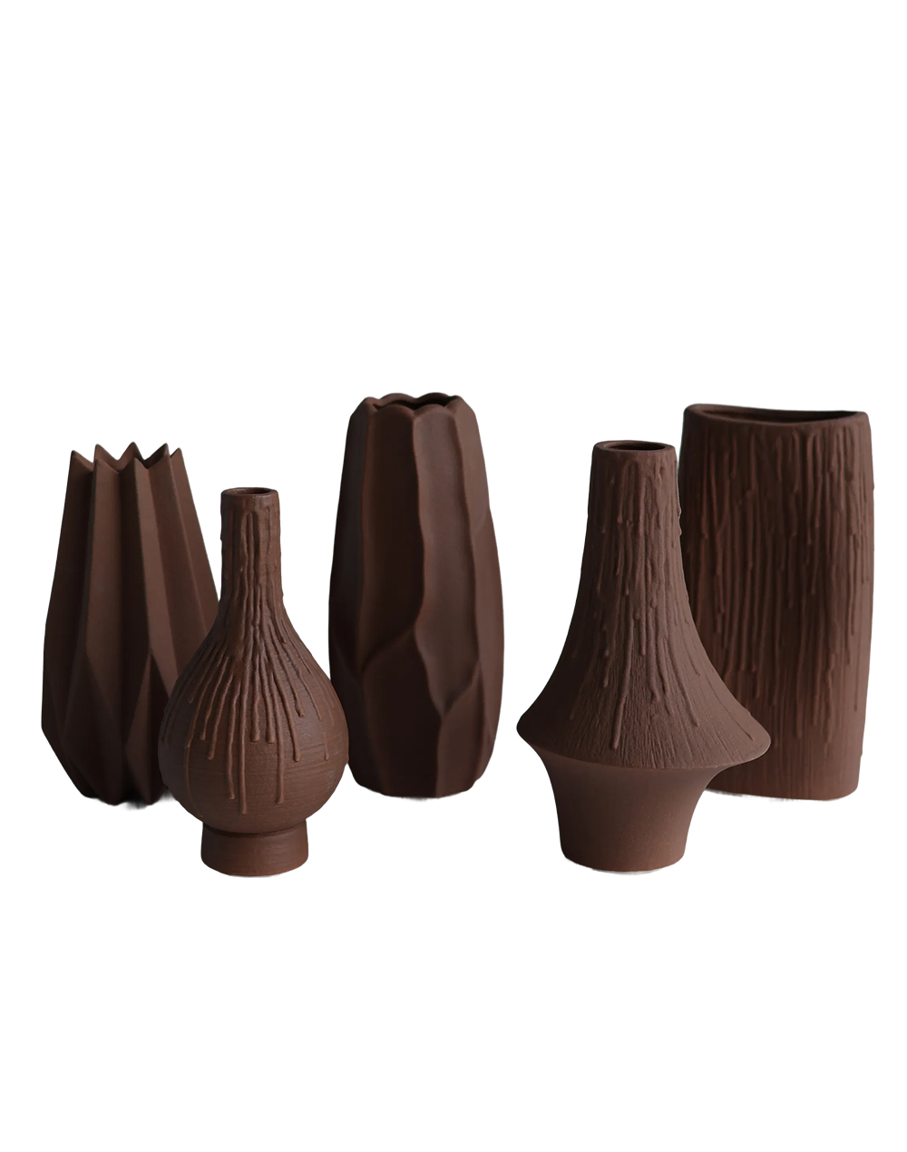 Product ID: CV-TERRA FORGE-486Introducing the Terra Forge 6 Vase Collection, a modern fusion of sculptural design and earthy, handcrafted texture. Each vase features a unique silhouette with a forged artisan look rich matte surfaces, organic curves, and refined detailing that elevate any interior. Perfect for contemporary, rustic-luxury, and organic modern spaces, these vases style beautifully with branches, dried florals, or as standalone art pieces. The collection offers depth, contrast, and timeless sophistication across shelves, consoles, dining tables, and event displays.
