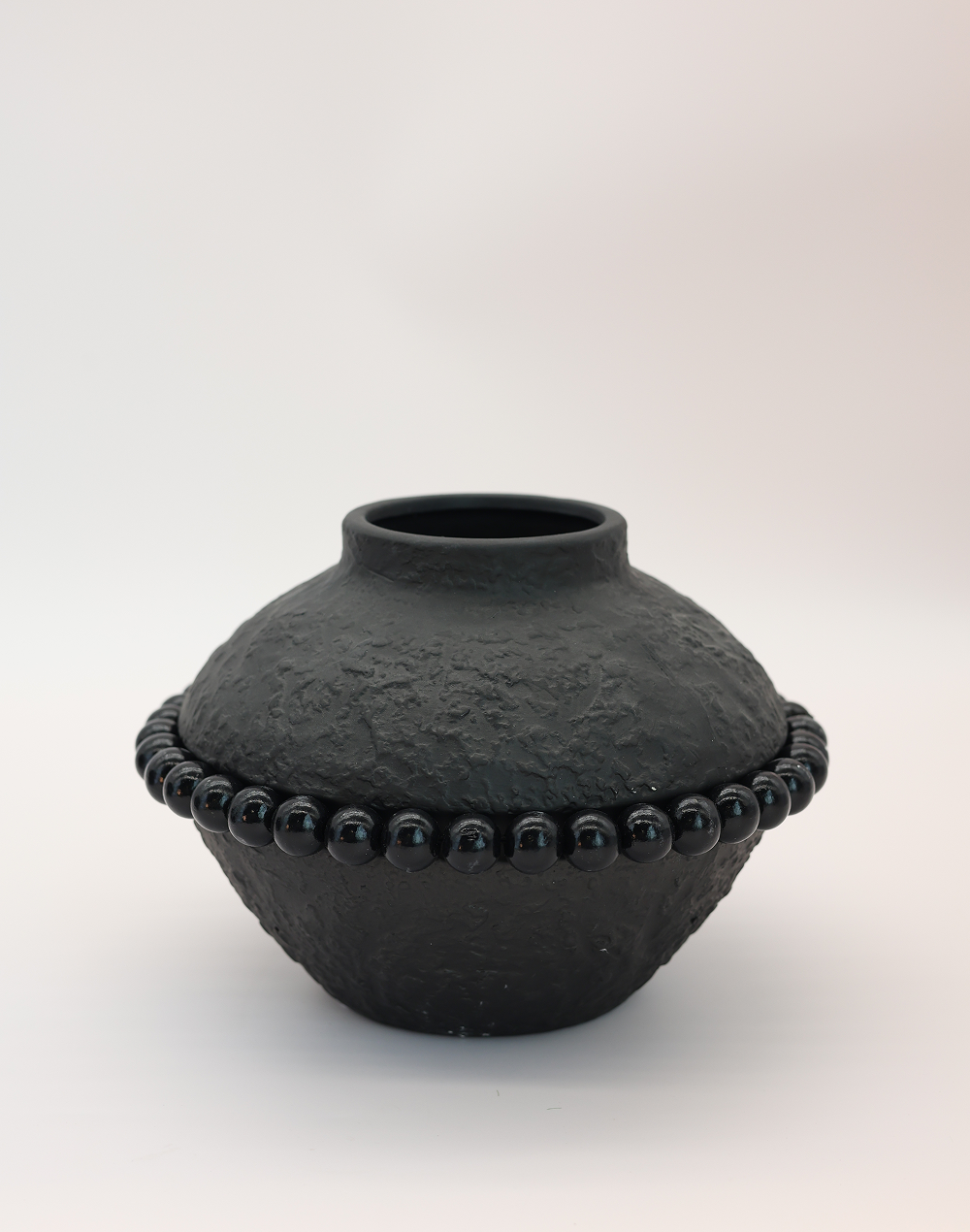 Product ID: wjm4266b-1406BBold and refined, the Terra Noir Accent Vase features a sculptural rounded silhouette enhanced by a subtle beaded detail that adds depth and texture. The matte noir finish creates a dramatic, modern presence, making it ideal for luxury event decor, statement centerpieces, and elevated interiors. Perfect for floral arrangements or as a standalone decorative piece, this vase brings a sophisticated, design-forward accent to any setting.