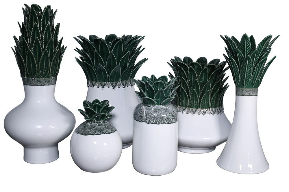 Product ID: CH-Leaf-642Bring a touch of lush, tropical elegance into your home with The Palma Collection. This stunning line of ceramic decor features eye-catching pieces inspired by the intricate beauty of palm fronds and pineapples. Each item combines a dramatic, deep green leaf design with a clean, high-gloss white base or a stylishly textured crackle glaze, creating a modern, botanical statement.