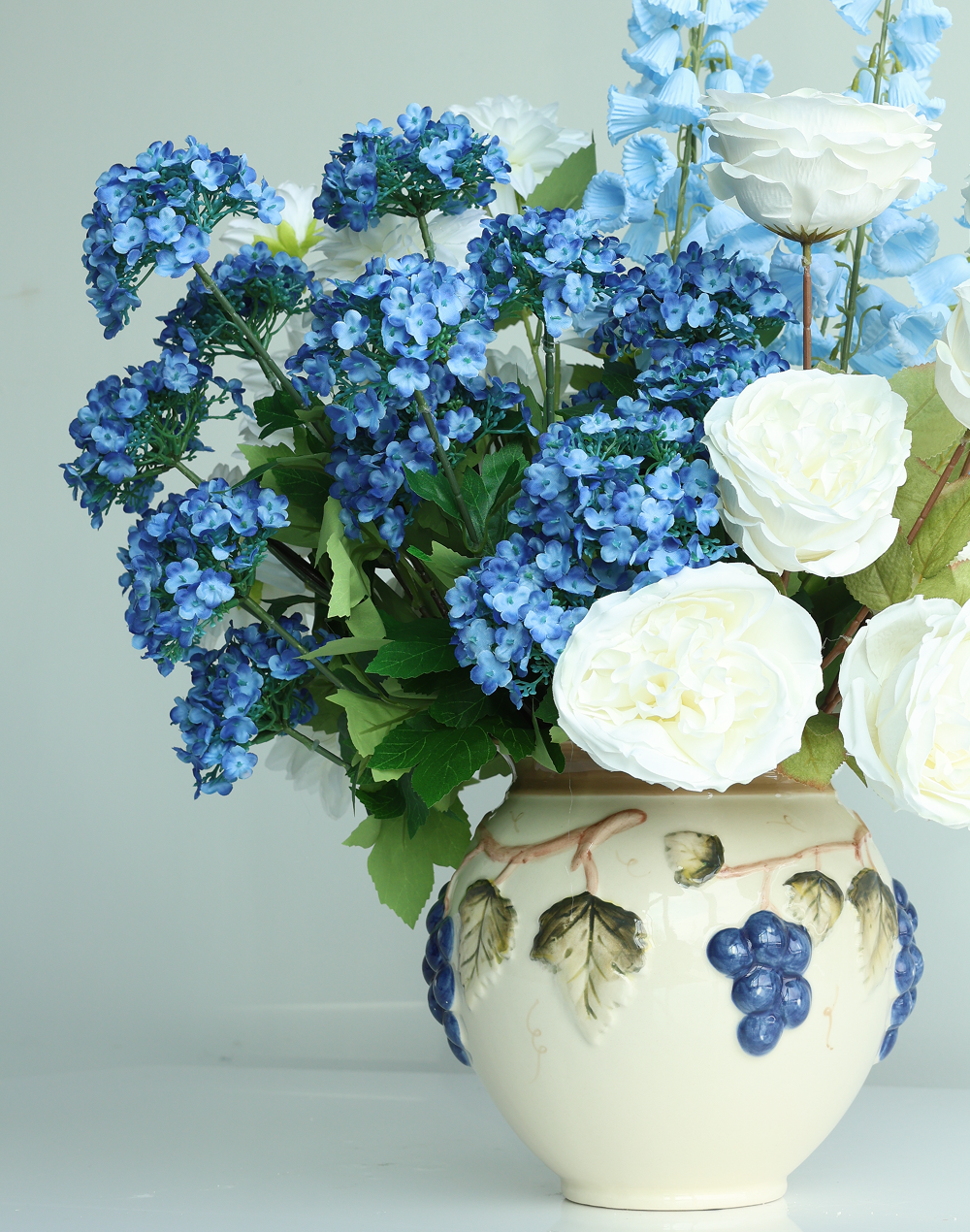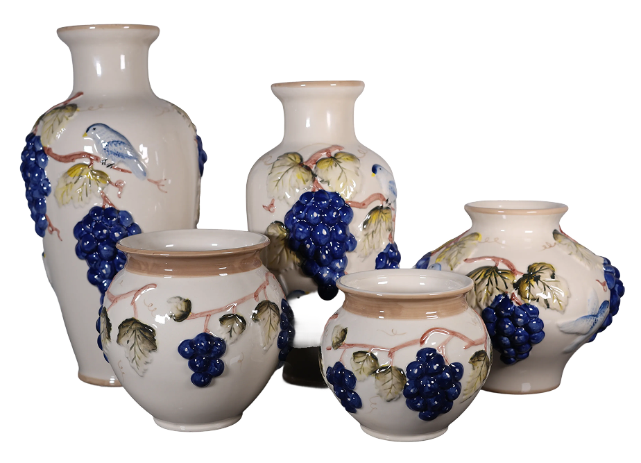 Product ID: CV-TUSCAN-618Capture the rustic charm and rich artistry of Italian vineyards with The Tuscany Collection. This exquisite line of ceramic vases and decorative accents features a warm, neutral glaze serving as the backdrop for beautiful.Each piece is adorned with lush clusters of deep blue grapes, green or yellow-hued grapevines and leaves, and delicate bluebirds, bringing the idyllic feel of the Italian countryside right into your home. The classic, earthy tones and traditional styling make these items perfect for adding a touch of European elegance to any room.