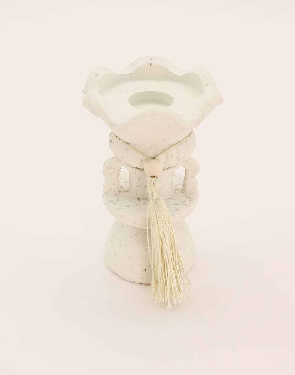 White Roman Tassel Candlestick -Short