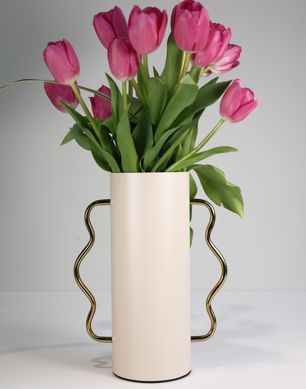 Product ID: AX149L-1438BClean and sculptural, the White Serpentine Vase features a smooth cylindrical silhouette accented by elegant wave-inspired handles in a refined metallic finish. The crisp white tone enhances its modern, minimalist appeal while the flowing curves add a touch of artistic movement. Ideal for luxury event decor, elevated centerpieces, and sophisticated interiors, this vase works beautifully with florals or as a standalone statement piece.
